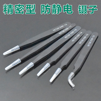 精密型加厚防静电镊子不锈钢电子手机维修工具尖扁直弯头六件套装
