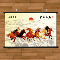 中国风生意创业如意吉祥水墨画马到成功装饰画八骏图有框布画挂画