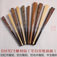 宣纸折扇雕刻8寸9寸10寸中玉仿红木黑雕刻洒金空白扇面书画创作用