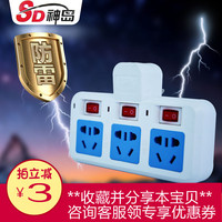 防雷插座转换器 无线插排一转二多家用多功能扩展插头排插板带USB