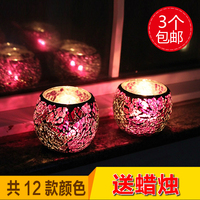 超值欧式马赛克玻璃蜡烛台浪漫表白烛光晚餐蜡烛杯摆件3件包邮