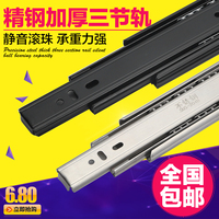 抽屉轨道三节轨加厚不锈钢阻尼缓冲静音导轨五金配件黑色滑轨滑轮