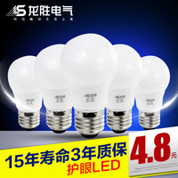 龙胜led灯泡照明暖白黄光3W5W超亮光源单灯节能灯泡E27螺口灯头