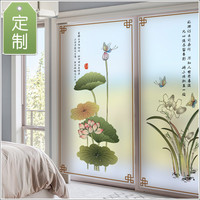 定制无胶静电玻璃贴膜浴室磨砂贴阳台防晒贴窗花贴纸中式荷花