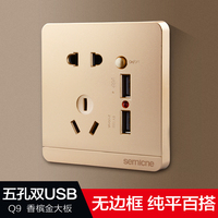 86型墙壁开关电源插座面板套餐 Q9香槟金无框大板 五孔双USB电脑