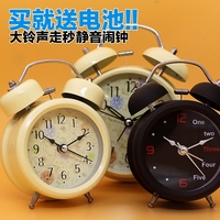 学生创意金属静音台钟 带夜灯大铃声闹钟个性懒人床头打铃时钟