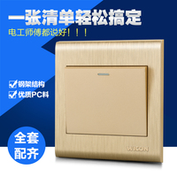 香槟金拉丝开关面板单开三控开关一开多控 86型三联1位 中途开关