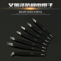 艾瑞泽ESD防静电镊子 高精密尖嘴直圆头弯头镊子不锈钢电子镊夹子