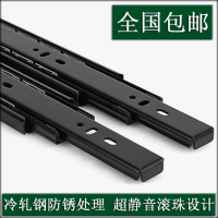 防锈冷轧钢抽屉静音滚珠家具办公桌五金配件三节滑道导轨道滑轨