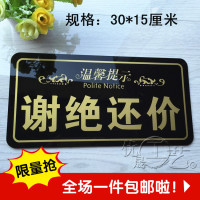 新款高档 谢绝议价请勿还价提示牌 明码实价概不退还营业指示挂牌