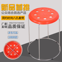 塑料圆凳子时尚创意餐凳家用现代简约不锈钢加厚成人客厅八孔套凳