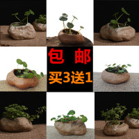 陶瓷仿石头花器 金钱草石头花盆 粗陶 水培花盘 复古多肉小花盆景