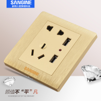 香槟色电源五眼带usb面板墙壁开关插座二三插带双USB五孔