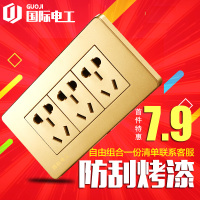 【防刮烤漆】国际电工 118型开关插座面板香槟金十五孔 9九孔插座
