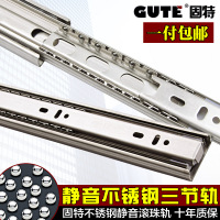 固特 抽屉轨道不锈钢 阻尼缓冲滑道三节轨电脑桌导轨滑轮衣橱滑轨