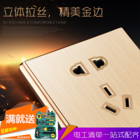 3D拉丝TCL开关插座86型家用墙壁带电源二三插5五孔插座面板香槟金