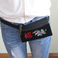 新款民族风绒布绣花腰包收银包胸包斜挎包越野跑贴身手机包
