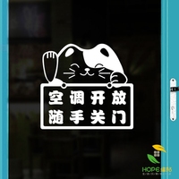 空调冷气开放随手关门服装咖啡餐厅饭店商铺超市推拉门玻璃墙贴纸