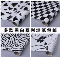 pvc自粘墙纸温馨卧室壁纸黑白奶牛斑马枝叶包装贴等不干胶即时贴