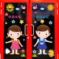 幼儿园玻璃门窗双面贴纸 班级教室布置卡通贴画商场店铺门窗墙贴