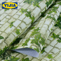 绿叶砖纹砖墙壁纸面包店奶茶店甜品店自粘墙纸 收银台翻新贴纸pvc