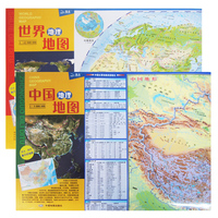 2018全新版 中国+世界地理地图 地形图 2张4开撕不烂 学生用桌面墙贴地图 中国地图 世界地图 T5