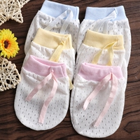 婴儿手套防抓脸新生儿透气薄款春夏季纯棉宝宝脚套0-7个月带抽绳