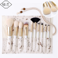 轻兰月光系列化妆刷10支套装扇形余粉刷全套柔软彩妆工具带包袋