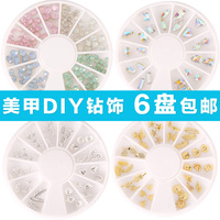 美甲工具饰品 圆盘盒装甲饰指甲贴片亚克力彩色尖底平底钻