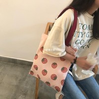 倪酱小铺 草莓包包女2019新款日系帆布袋ins少女可爱单肩帆布包女