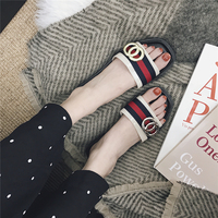 2018夏季新款英伦风时尚三色带圆环拖鞋女字母外穿防滑一字凉拖鞋