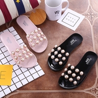 2018夏季新款女士一字平底家居室内外时尚防滑浴室韩版水钻凉拖鞋