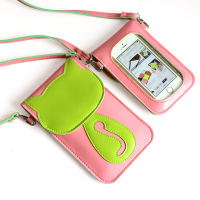 2018触屏卡通猫咪雨伞单肩斜挎女士手机包挂脖撞色迷你斜跨手机袋