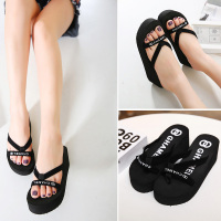 夏季坡跟拖鞋女人字拖防滑坡高跟松糕底度假韩版沙滩拖