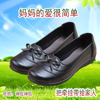 中老年皮鞋女春秋妈妈鞋浅口单鞋平底低跟老人鞋女防滑软底圆头夏