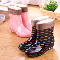 时尚加绒雨鞋女成人韩国保暖短筒可爱防滑水鞋中筒圆点四季秋冬