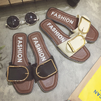 2017夏季新款时尚平底金属皮带扣一字拖鞋百搭外出沙滩凉鞋女学生