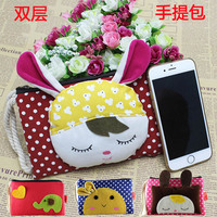 加厚双层手提5.5寸大屏帆布手机包女式小化妆包 两层收纳包零钱包