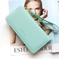 【天天特价】女士长款钱包磨砂皮拉链包女式薄款手拿包手机包卡包