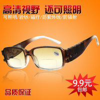 防紫外线男女防疲劳老花眼镜 远近两用带灯渐进多焦点 双光老花镜