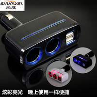 舜威汽车一拖三点烟器一拖二带双usb车充一分二多功能车载充电器