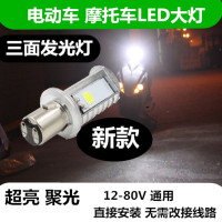 电动车灯摩托车LED大灯灯泡改装配件12V-80V通用内置超亮双爪前灯