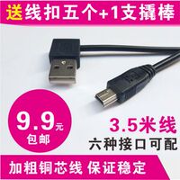 行车记录仪GPS导航车载充电器带USB供电线电源线3.5米安卓T头弯头