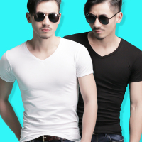 2017新款v领短袖t恤男士修身韩版男装打底衫半袖体恤纯色潮上衣服