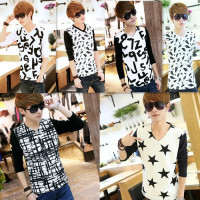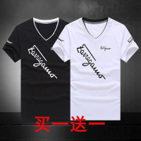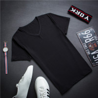 新款韩版男士夏季v领短袖T恤修身休闲潮流青少年男装学生半袖体恤