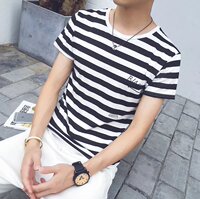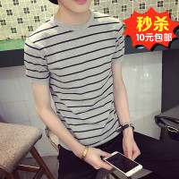 9.9元特价包邮圆领短袖t恤男士韩版学生衣服半袖条纹体恤潮流男装