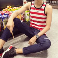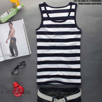 男士背心男韩版修身型横条纹紧身无袖小汗背心夏季休闲运动潮流