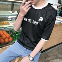 夏季男士短袖t恤韩版修身日系七分袖个性打底衫学生潮流7分上衣服