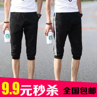 男士休闲运动七分裤卫裤哈伦裤裤子沙滩潮夏季短裤男夏天中裤7分
