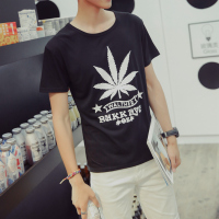 夏季男短袖 t恤韩版印花圆领学生半袖青年修身半截袖男装上衣